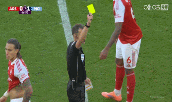 第36分钟,B席放铲放倒加布里埃尔,吃到黄牌。↓