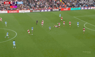 第90+3分钟,埃泽送出挑传,马丁内利机敏前插,面对多纳鲁马吊射得手,阿森纳1-1曼城。↓
